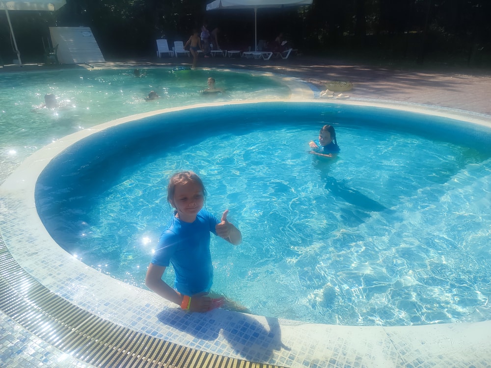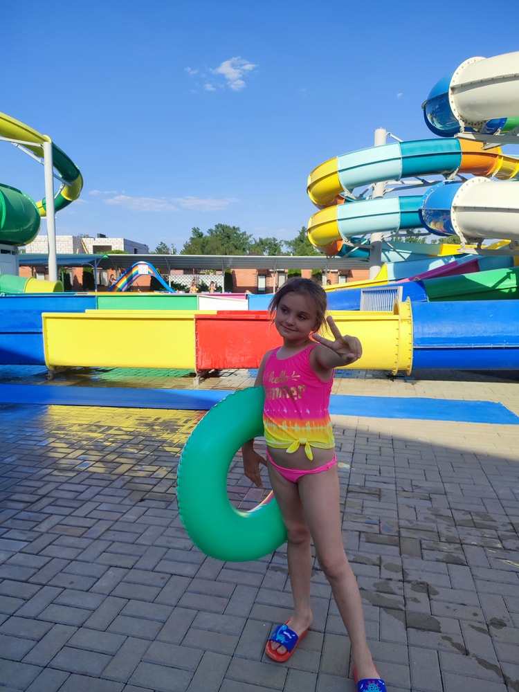 Аквапарк отличный, не огромный но все есть, до 140 см пускают не на все горки, но Ане хватило.