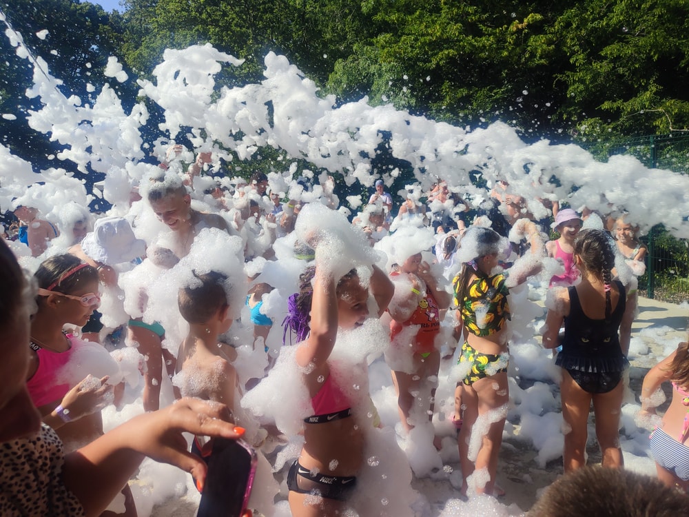 Замки, строят 1-2 раза в неделю, шашлык батл 1-2 раза в неделю, казан шоу по вторникам вроде, пенная дискотека по субботам и это прям круто, мы были на пенных дискотеках ни раз, ну так пена, тут этой пены нагрузили по уровень пляжных зонтиков и детей просто было не найти)