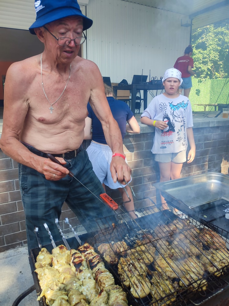 Этот дядя из Ростова выиграл. Хотя по мне вкуснее шашлык был у других. Дядя его не дожарил чуть. Ну это по мне. Дядя правда очень колоритный)