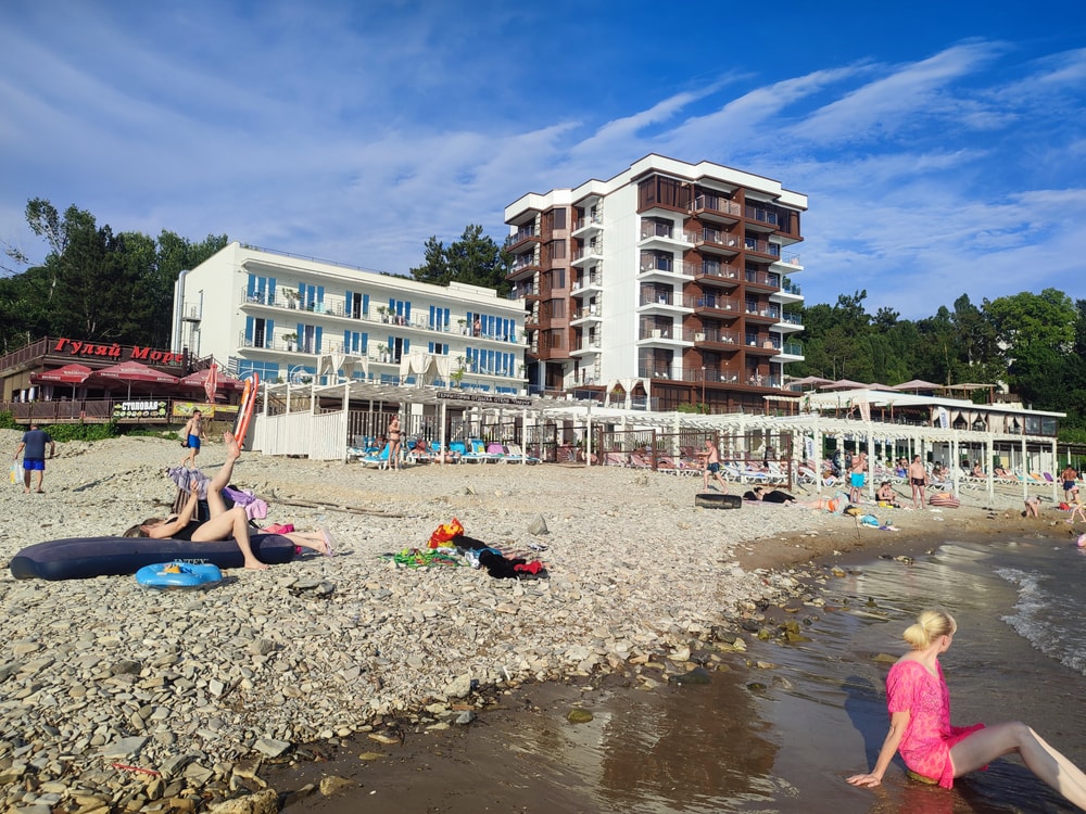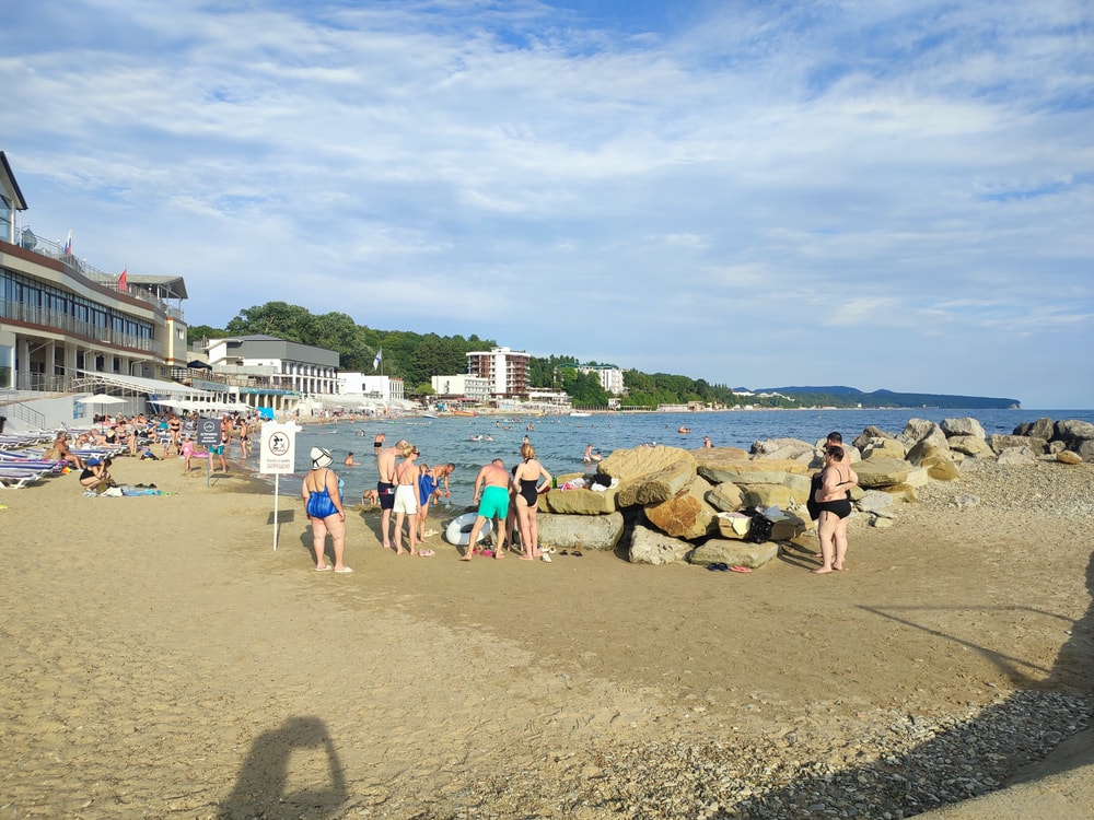 И вот наверное тот поселочек что я искала, где точно поизучаю и посмотрю мелкие отельчики , у меня спрашивали про Пляхо, почему пляж только платный, вот в этом месте и поселочек Восток и пляж отличный и бесплатно. Набережной нет конечно, переходы подземные через трассу, сам поселок не посмотрела. Гуляли по пляжу, но по карте там живут люди)) хоть и немного. И пляж весьма неполный. На первой линии там только один отель, узко очень. Ривьера какая то.