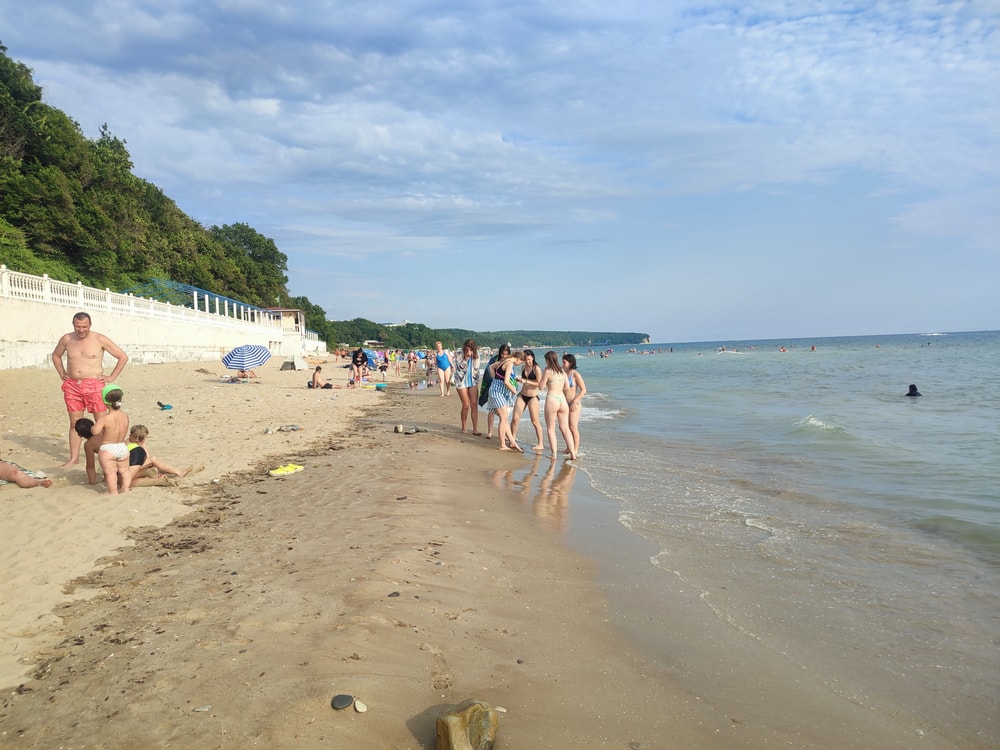 Пляж радужный, место известное, много обзоров в инете, в прошлом году очень хотела туда на денек на машине прям близко к морю, но слава богу, нас отвлек Орленок. Пляж там правда классный, песок, чистая вполне вода, резко вдруг пляж стал широкий и идет он до Орленка, там закрыто все дальше. Но народу оочень много, кафешки, лодки, ватрушки, бананы, кукуруза, аттракционы, все в кучу малу. И прям витает чуть дух что там не очень хорошо с сан эпид нормами. В прошлом году что то читала.