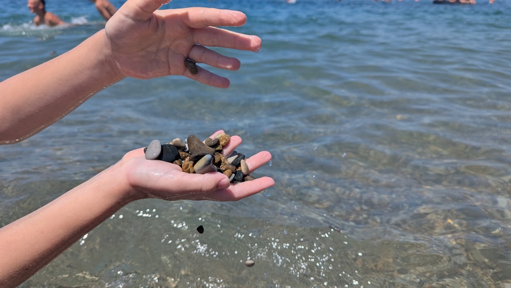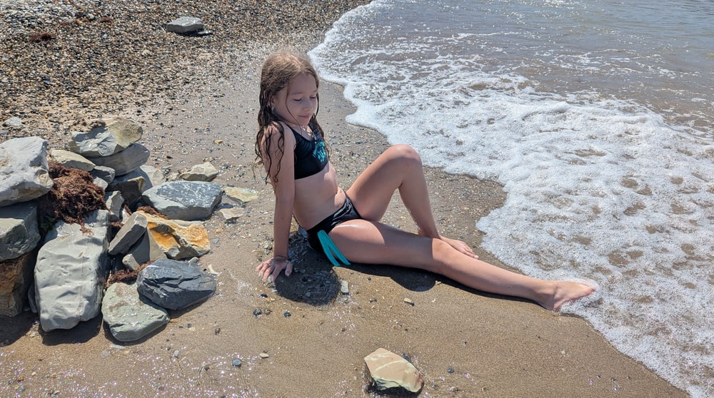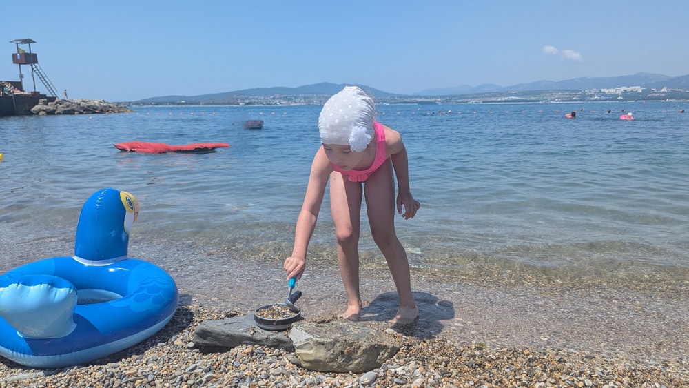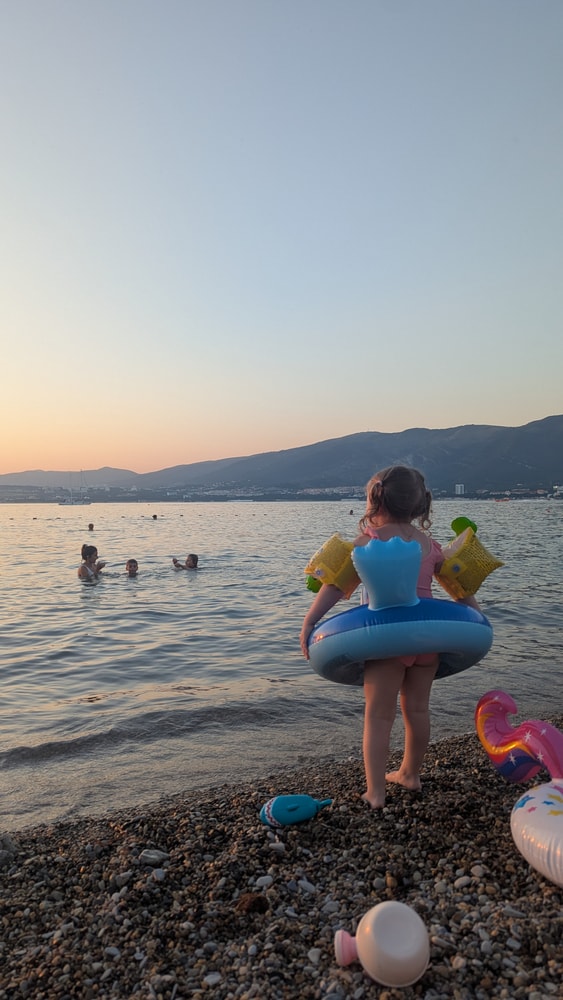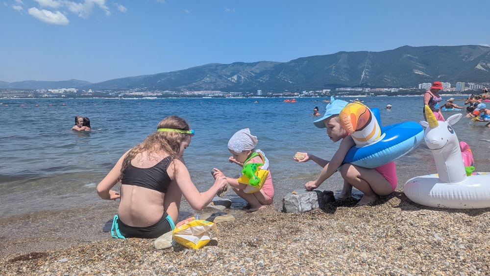 Один день был шторм. Ну как шторм, небольшие волны. Но для детей это были прям воооолны🤣 и этот шторм намыл много песка на пляж. Вот мы всегда купались в одном и том же месте, на фото один и тот же участок пляжа везде, сравните)))