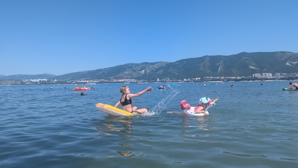И сам пляж в этот раз разочаровал - видимо, его подсмыло, но ничего с этим делать Метрополь не стал. Пляж (доступный для всех, то есть прибрежная полоса) и так узкий, так еще и местами огалились глыбы, и ты лавируешь между ними, пытаясь пройти к воде, обойти негде. В самом море местами тоже глыбы. На нашем любимом участке пляжа купаться по сути можно было только в центре - там песок и мелкая галька на входе и нет глыб и водорослей в море. Поэтому получается, что вся толпа кучкуется в центре, разойтись некуда. Глубина довольно большая. И представьте в этой обстановке парочку пацанов, играющих в гандбол в море. Ну красота, а не картинка🙈