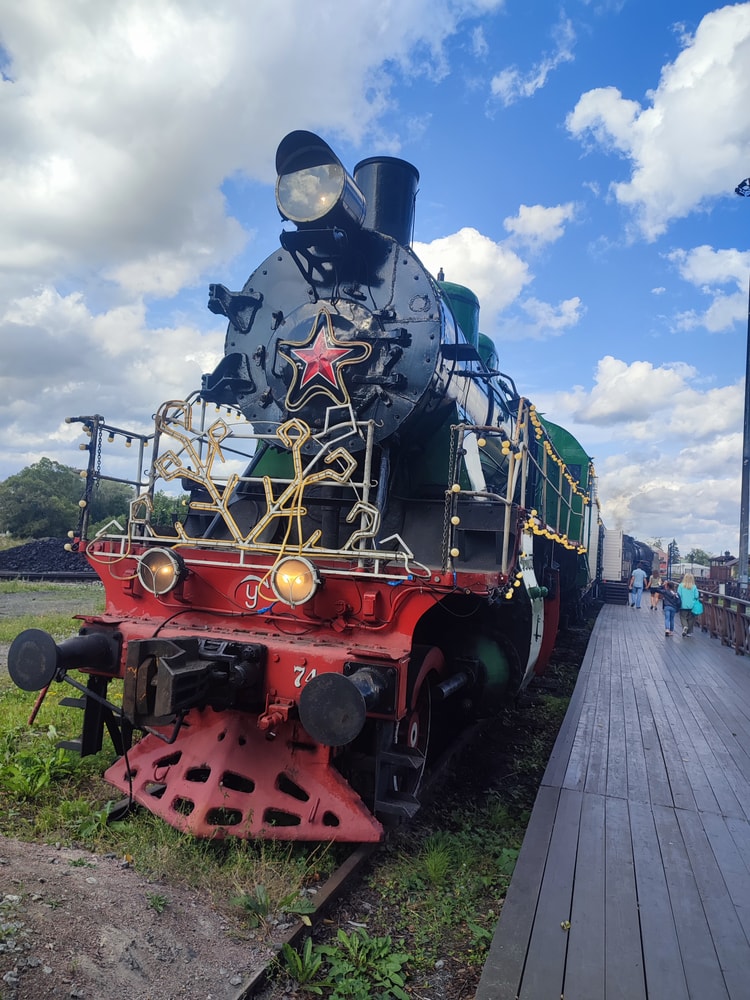 А еще Сортавала город паровозиков, их там с десяток точно. Если не больше. И поезд деда Мороза, и Рускеальский экспресс, и местный поезд Нерпочка. И просто еще несколько паровозов в виде символа города и рабочих тоже много.