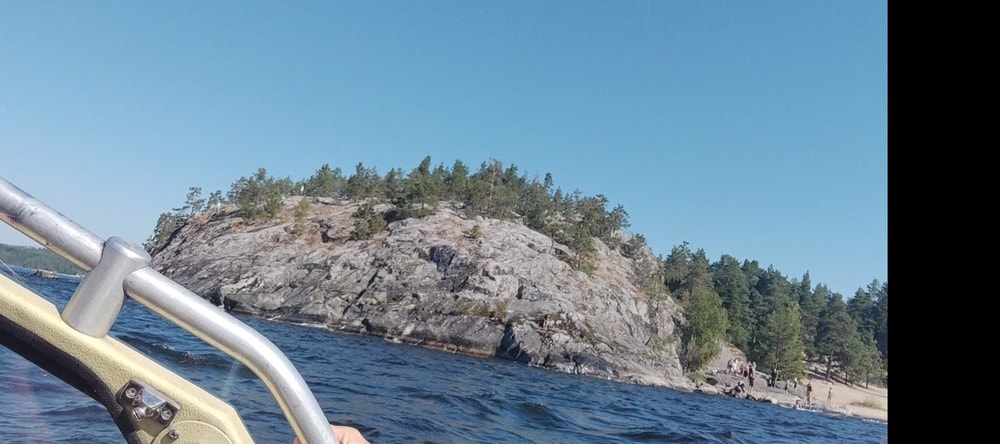 К началу острова Кайонсаари от шапки мономаха нас домчали катером)