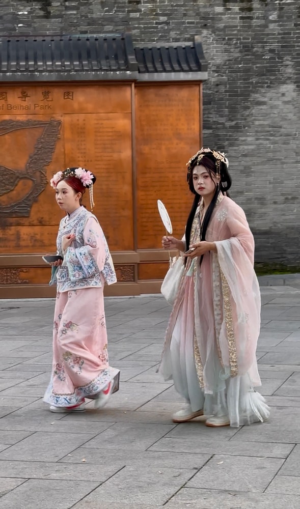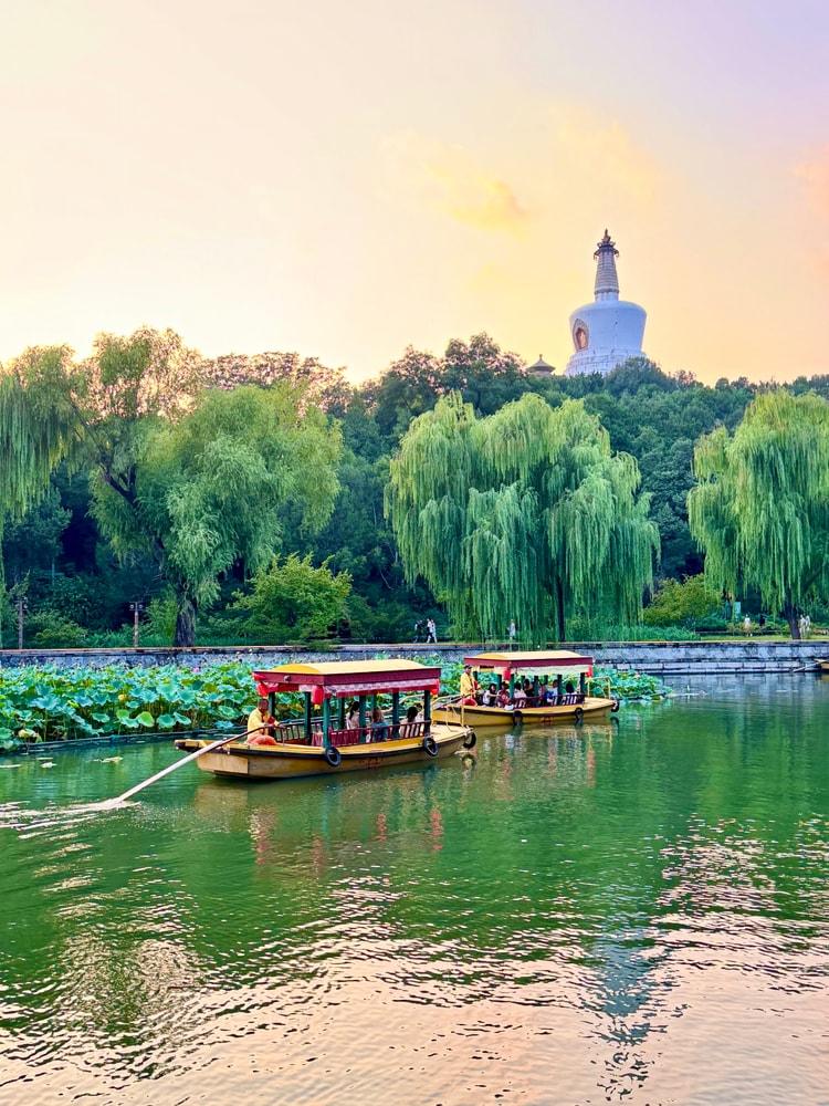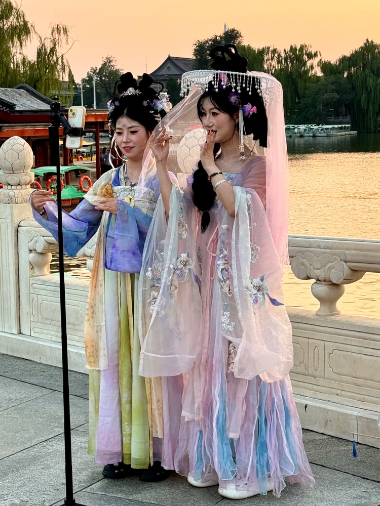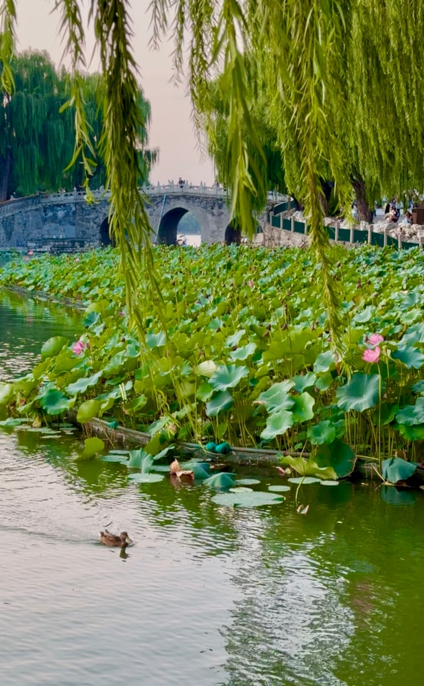 Парк Бэйхай. Очарование! Ивы, лотосы, лодочки, уточки, милые девочки в ханьфу