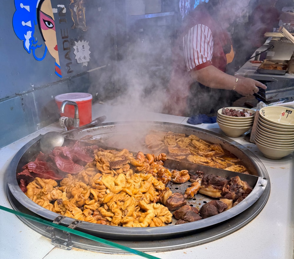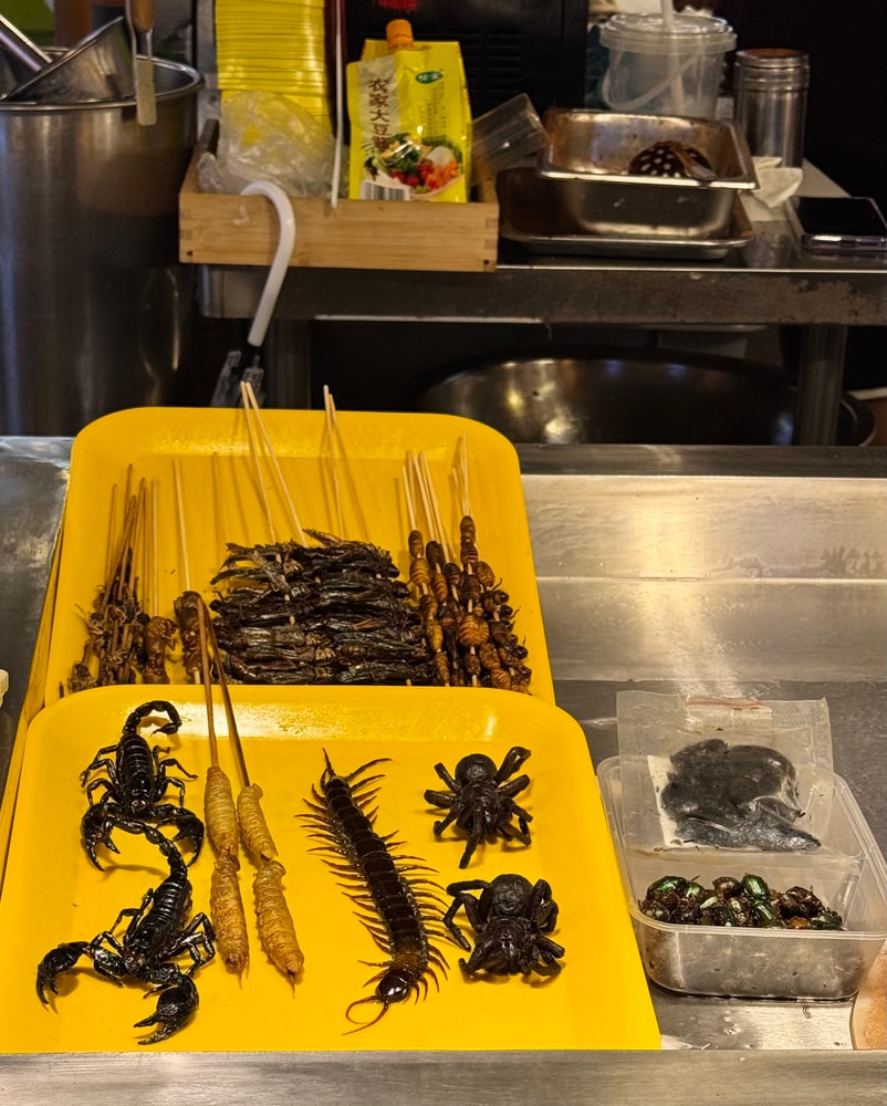 Вечером прошлись по нашей улице… Я абсолютно не запоминаю китайские названия! Японские хоть как-то укладываются в голове, а китайские ну никак. Немного непонятной еды. В итоге ничего не захотелось.