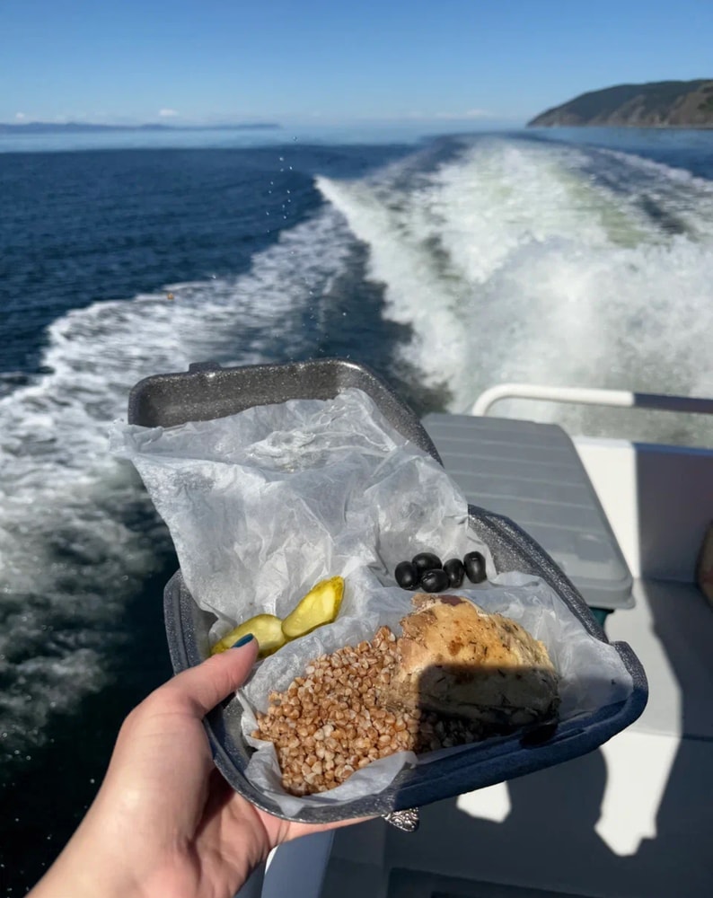 Раз сто я уже слышала про нереальные закаты там. Тут они чилили на сапах каждый день. Брали рацию (одну на троих замечу🤔) и выслеживали косаток и китов. И те, и другие были, только фоток нормальных нет. Их снимали с дронов, а с берега только хвосты и плавники было видно. Но зато были и такие туристы, которых относило течением, потом за ними на катере плавали. Буйков то нет))))