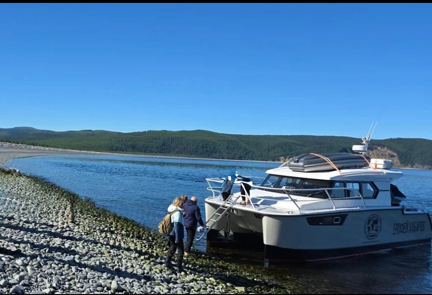 Ну и многие просто промочили обувь, потому что, залезая в катер, не сделать этого невозможно. Вот на таком катере они плыли 8 часов от берега большой земли (это в 3х часах езды на уазиках от Николаевска) до своей живописной бухты.