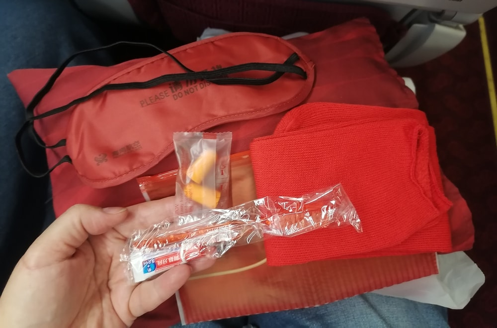 Летели из Москвы в Шанхай Хайнаньскими авиалиниями с суточной пересадкой в Пекине. Билеты купила через Т-Путешествия на OneTwoTrip за 36 тыс на двоих, ещё и 7% кэшбэк получила. Полет прошёл нормально, без задержек и других потрясений. Накормили, напоили, кроме пледа выдали носочки, беруши, маску для сна и даже зубную щетку, приятно.