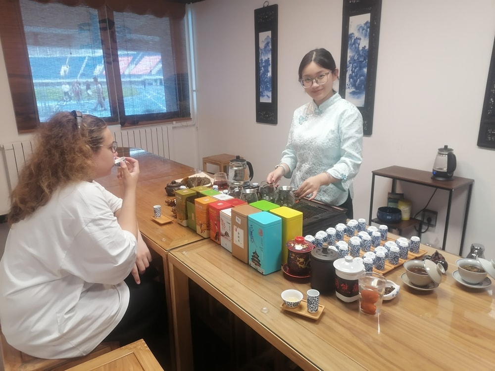 Следующим нашим пунктом был Летний императорский дворец. По пути заехали в чайный магазин в олимпийской деревне, для нас провели рекламную чайную церемонию с дегустацией нескольких сортов чая, демонстрацией чайничков, меняющих цвет, и писающего мальчика)) Вжик, привет))) Ничего не купили, удивили цены, начинающиеся от 5000 рублей за упаковку чая.