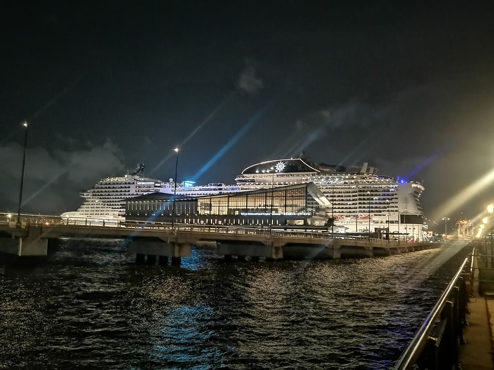 Этот наш третий круиз, лайнер MSC BELLISSIMA родной брат MSC VIRTUOSA, на котором мы ходили прошлой зимой по Персидскому заливу, поэтому никаких особенных сюрпризов и неожиданностей не было, за исключением толпы китайских товарищей, расталкивающих всех на своём пути, сметающих еду на шведском столе, выстраивающихся в бесконечные очереди и очень громко говорящих, даже если они находятся в полуметре друг от друга. К счастью, на корабле много мест, где можно скрыться от толпы, отдохнуть от шума, насладиться коктейлем и хорошей живой музыкой. Три дня, считая день посадки, мы чилили в барах и у бассейна, ходили на шоу в театр, сын ходил в тинсклаб играть в приставку, играли в баскетбол, вобщем, отдыхали. Вот она, наша красавица Bellissima!