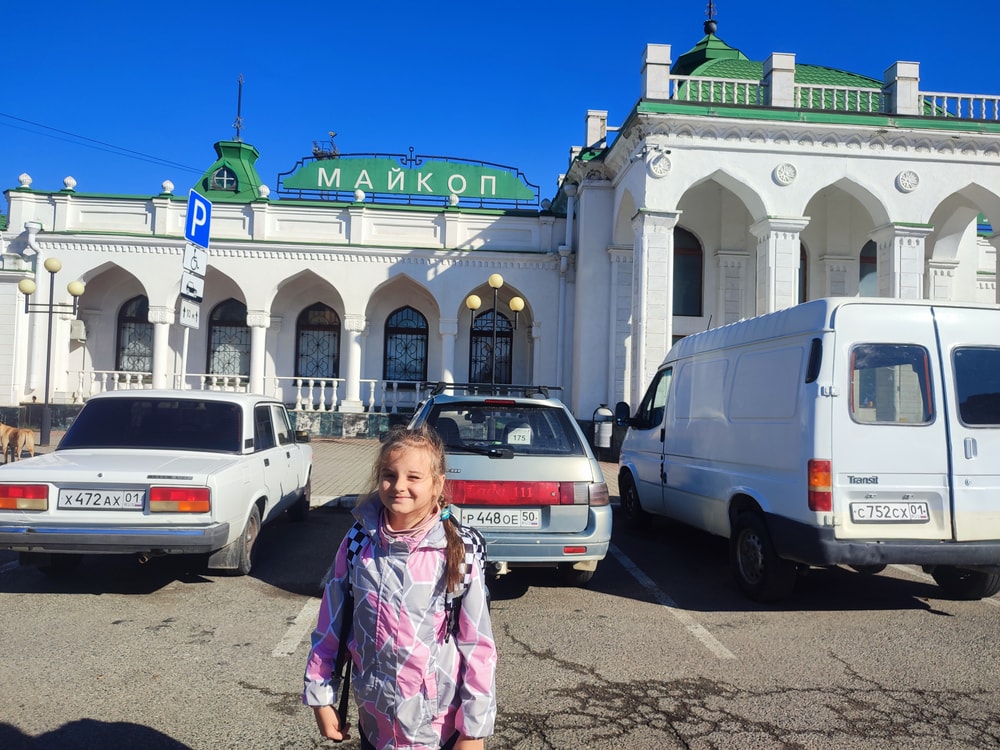 Кстати еще про мои лайфхаки или мою паранойю. Я люблю все на бумаге. По этому билеты всегда себе распечатываю, так вот в Краснодаре на вокзале при полном 4 джи вообще не было инета, люди пытались подключить вай фай, у меня не вышло. А на автовокзал пускают по билетам, у многих они были в телефоне и не открывались. Прогулялись по утреннему Майкопу и поняли что тут жарко)