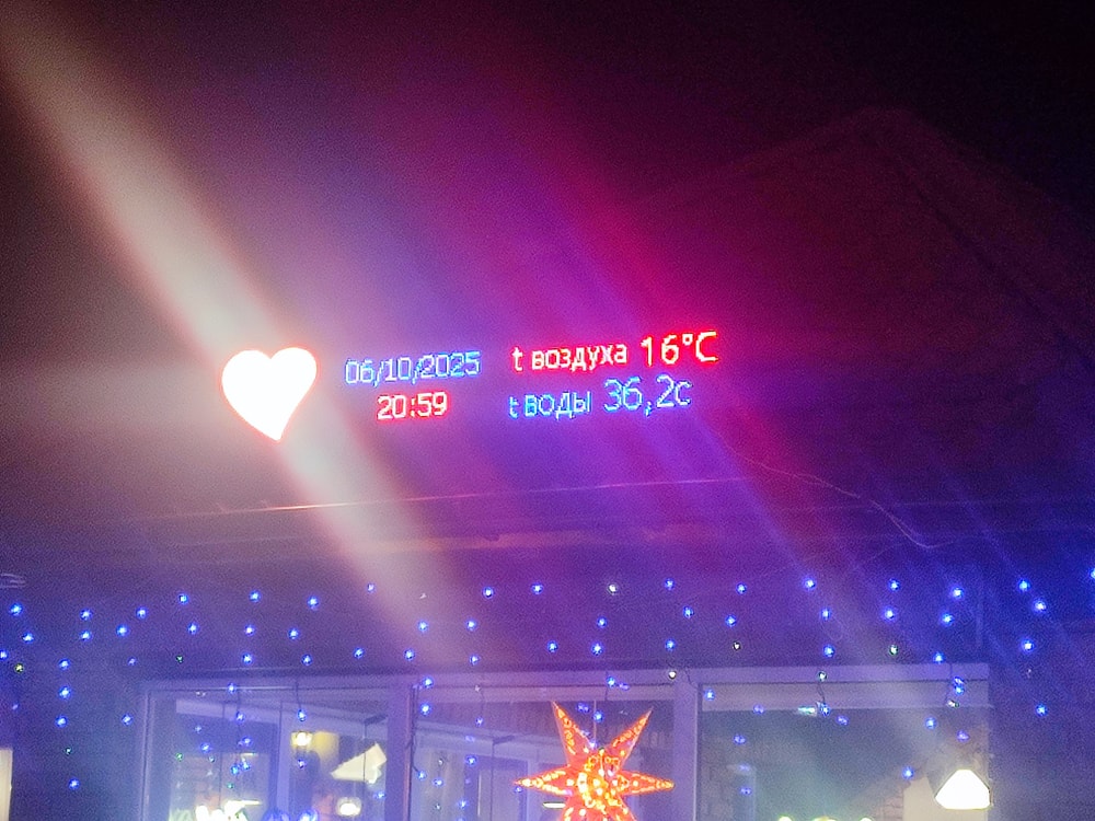 Очень классная задумка с огромным экраном у бассейна, на фото вверху видно, где бассейн у двухэтажных корпусов, экран размером с отсек номера, во весь балкон, там обычно играет музыка, какой то канал клипы 80-90х , очень хорошее качество, очень прикольно. Музыка не очень громко. А вечерком кинозал в бассейне, можно смотреть кино сидя в горячем термальном бассейне, а можно смотреть сидя на лежачках.