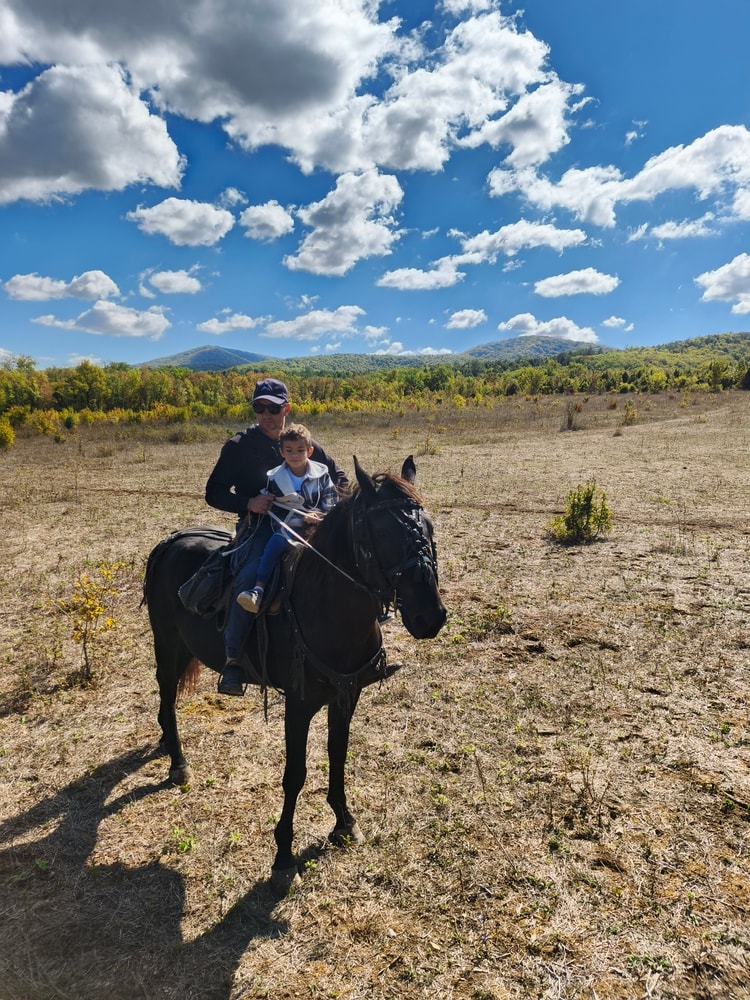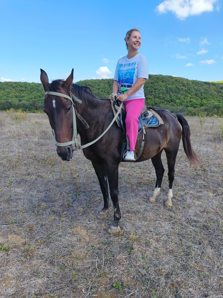 Потом заехали покататься на лошадях. В районе Сукко много разных конюшен, длительность прогулок везде примерно одинаковая, и цена примерно одинаковая - около 1500 за 40-50 минут, если дольше - то дороже, если меньше - дешевле. Я бронировала через сайт, была скидка 10%. Покатались классно, я вообще первый раз на коне верхом ехала, очень понравилось, но на следующие два дня ноги болели знатно. Конь в начале решил показать характер и по узкой тропинке рванул на обгон другой лошадки, едва не скинув меня с седла, но потом мы с ним поладили))