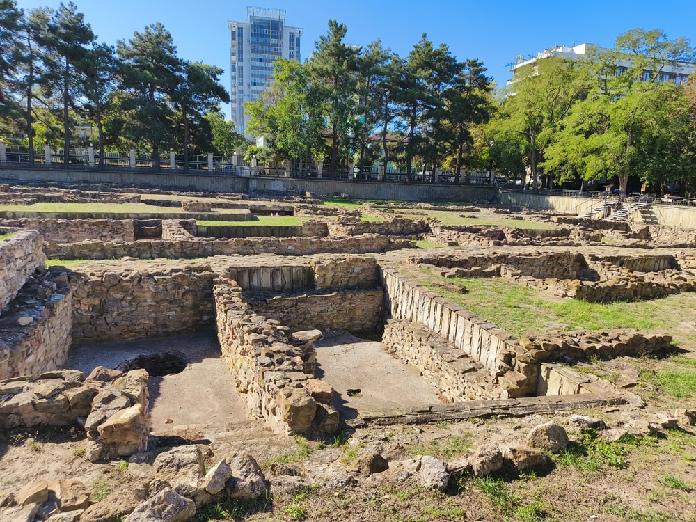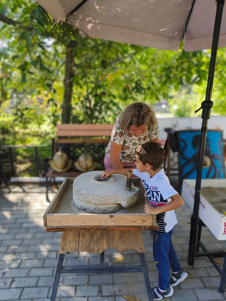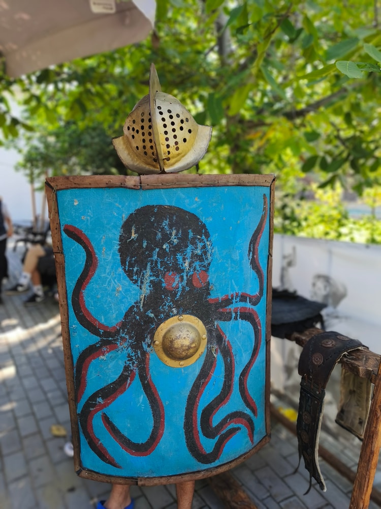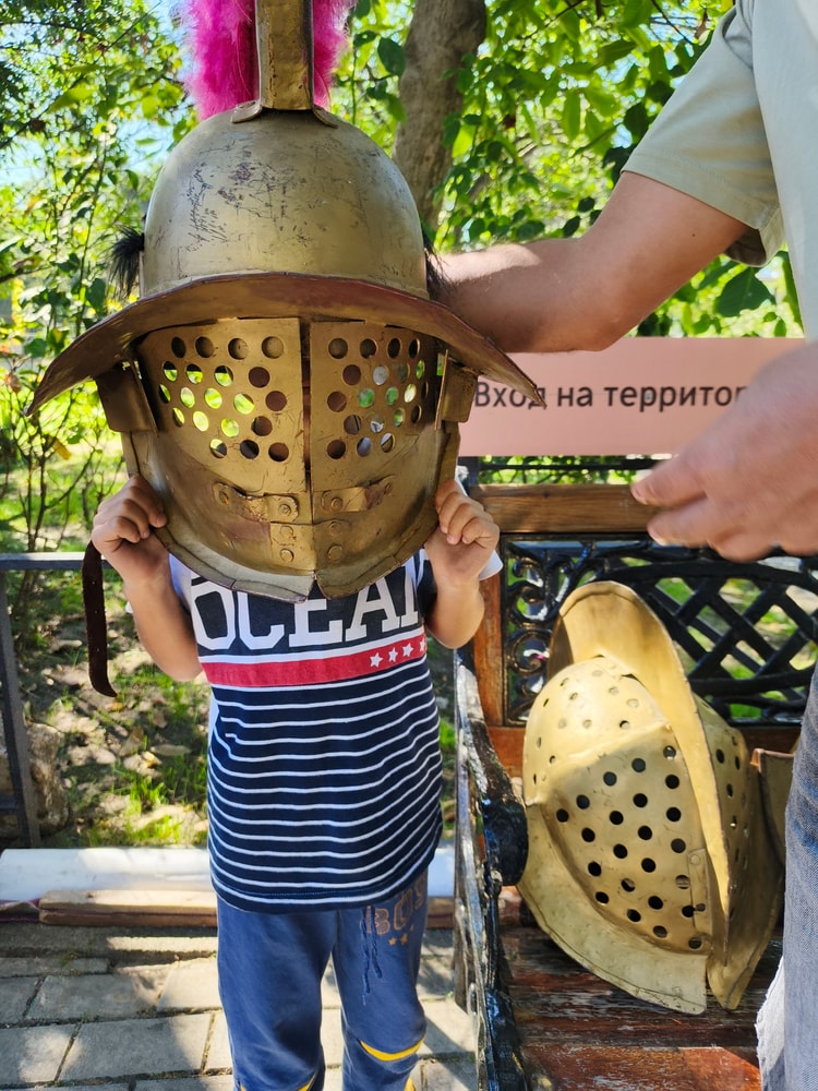 Еще немного прошлись по музеям (заглянули на развалины античной Горгиппии и в краеведческий музей), но без экскурсий, просто осматривали самостоятельно. Очень понравилась небольшая интерактивная площадка перед музеем для детей (и некоторых взрослых), где можно было примерить шлем и шит греческого воина, покрутить жернова, поработать за ткацким станком, поискать в песочнице черепки.