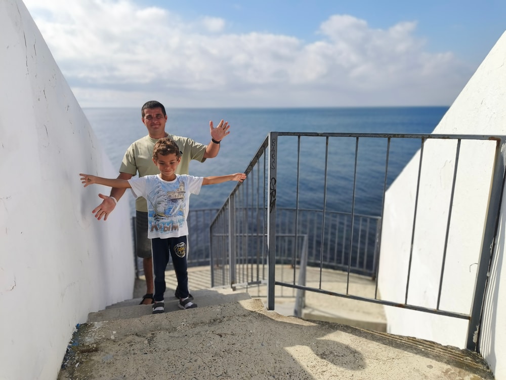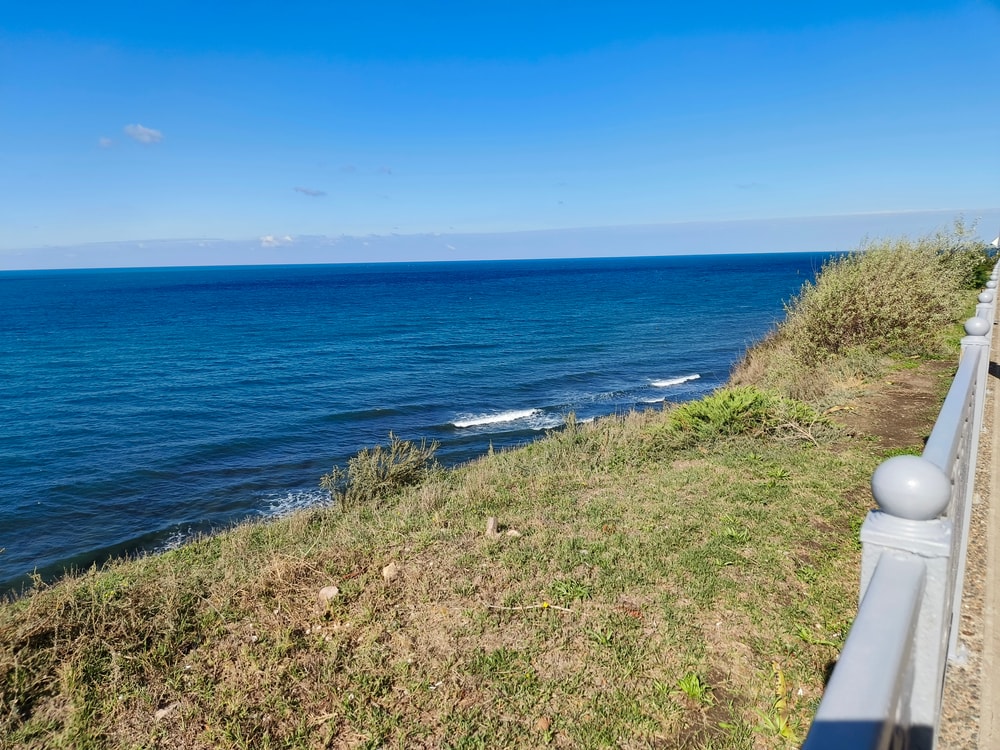 Набережная над высоким обрывом, любоваться морем можно, спускаться довольно проблематично. В районе отеля два спуска вниз к морю - один от санатория, лестница и даже лифт. В ту сторону (направо от старого маяка) набережная благоустроенная, много развлекательных зон - кафе, тренажерные площадки, магазинчики с сувенирами, даже вроде была небольшая картинная галерея...