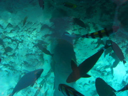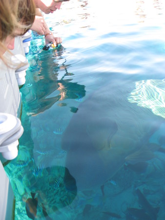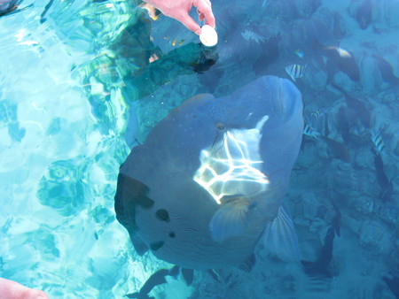 Это Гриша, местная достопримечательность...огромная рыба наполеон, любит яйца...