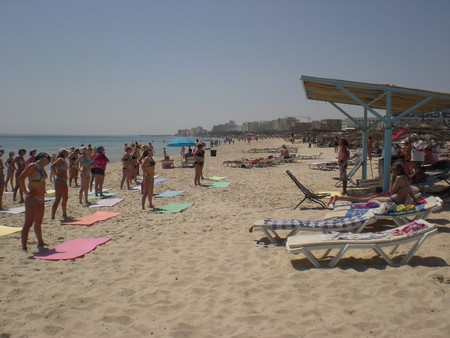Каждое утро мы вставали в 6.30 занимали лежаки на пляже. Пляж у нас был самый чистый и самый охраняемый! Потом завтрак и купаться и загарать! По утрам на пляже включали музыку и аниматоры вели зарядку, а потом водную аеробику. Одним словом, молодые, красивые арабы развлекали нас по полной. Молодцы ребята!