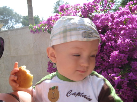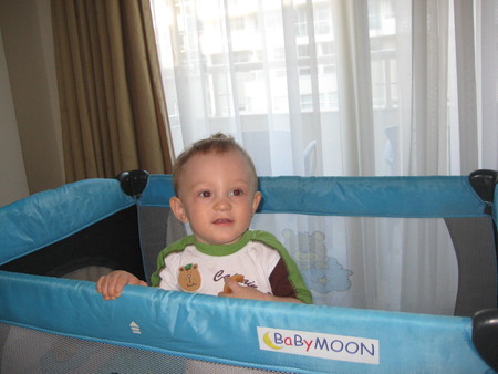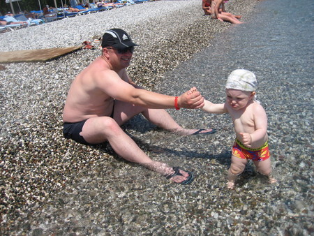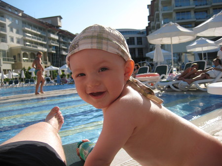 Так думали мы,Владик первые 2 дня испытывал на на прочность,ужассно кушал,за стульчиком детским в сотловой не сидел,всё хотел поторгать,кушали мы по очереди,вначале муж,я гуляла с Владом,потом я ,они гуляли))) В общем его беспокоили его зубки и новая обстановка,к папе на руки шел редко,все время висел у меня на руках,в номере устраивал истерики, на людях улыбался и был образцово показательным ребенком!!! Коляску мы оставили дома и правильно сделали,он либо ходил сам или я его носила,иногда шел к папе,взяли там коляску на прокат,Владя вначале очень обрадовался транспорту,но ненадолго минут на 10,а потом мы там возили наши сумки)))