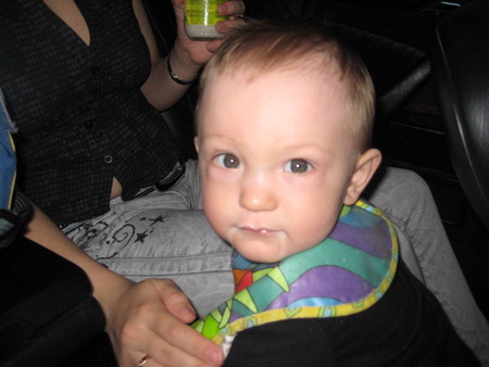 В машине вел себя терпимо,часик поспал,почитали книжки,подоставали "ДЯДЮ" за рулем))) , пару раз пытались перебраться к папе вперед,в общем на твердую 4+!!!