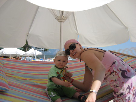 Обед,я укладывала Владусю спать и папу тоже))) Мальчики спали,мама шла на обед,готовила там обед Владику и возвращалась, малыш наш на отдыхе спал в обед по 2.5 часа!!!!!! Уставал бедняжка))))Потом папа обедал,у нас оставалось время на общий сон,затем мы все дружно шли на пляж к морю,а после 5 к бассейну.