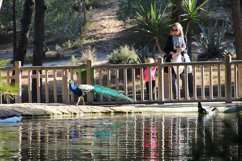 В нем есть небольшой зоопарк, в котором живут утки, гуси, лебеди, черепахи... По всему парку гуляют павлины и бегает милые белочки. Есть отличная детская площадка в окружении высоких сосен.