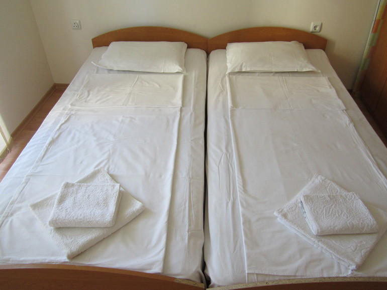 Предлагаю Вам размещение в апартаменте с одной спальней и гостиной, который рассчитан на проживание 4 человек. В спальне большая двуспальная кровать, гардероб. В гостиной диван, на котором может разместится 2 человека для сна. В номере предусмотрен кондиционер, отдельный санузел, кухонный блок (холодильник, СВЧ печь, плита, мойка, тостер, чайник, набор посуды и т.д.), телевизор со спутниковым TV, DVD плеер, так же есть обеденный стол и садовый столик на балконе, барбекю. Выходить на балкон можно из спальни и гостиной.