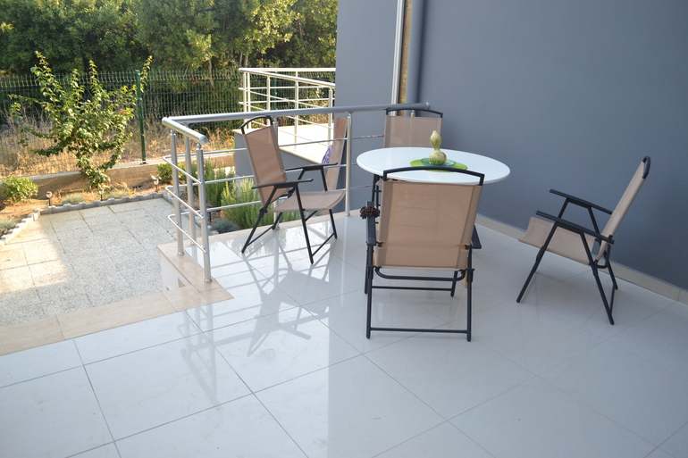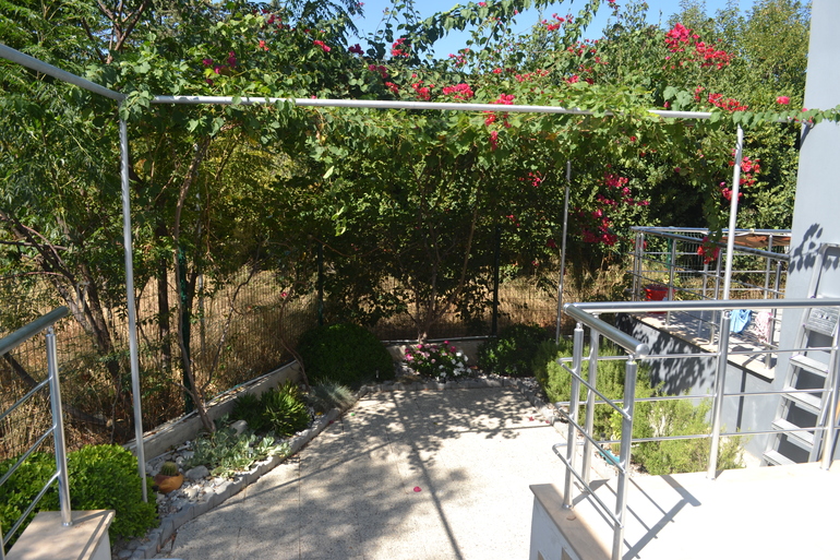к веранде примыкает небольшой огороженный участок с растениями по периметру.