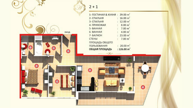 ПЛАНИРОВКА АПАРТАМЕНТОВ 2+1