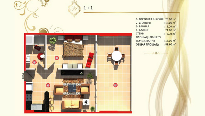ПЛАНИРОВКА АПАРТАМЕНТОВ 1+1