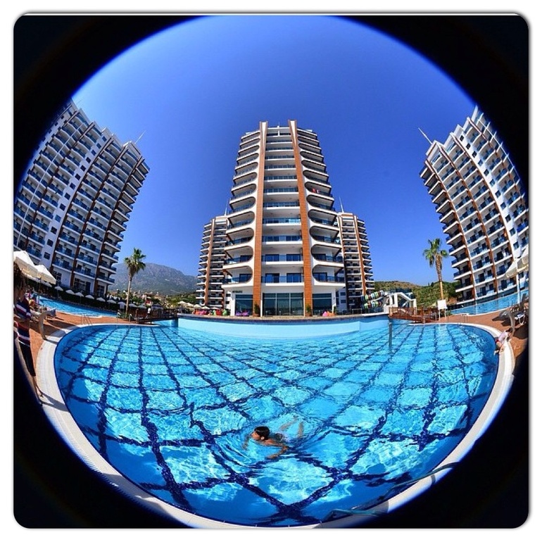 У комплекса большая территория для апартаментов, вся отделка итальянская и очень качественная ( чего только стоят люстры в ходах, их вешали 3! месяца). Территория охраняется профессиональной охраной, а не сторожем как во всех стальных. Это позволяет отпускать детей одних гулять ( если они конечно умеют плавать!) Так же на территории хорошая детская площадка, теннисный корт и баскетбольная площадка. Отдельным зданием стоит хамам с бассейном и фитнес зал и кинотеатр с боулингом и дискотекой.