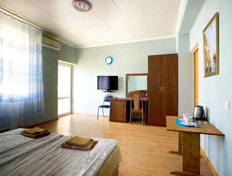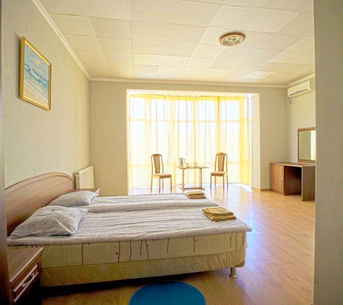 Добрый день, Анна. На период с 24.08 по 04.09 для Вашей семь можем предложить и однокомнатный Полулюкс и двухкомнатный Люкс. Двухкомнатный номер имеет: 35кв.м., две комнаты, две полуторные кровати, которые сдвигаются или раздвигаются, диван, возможно допместо, прочая мебель, душ, туалет, ТВ, холодильник, сплит-система, балкон. Стоимость номера до 31.08 - 2600руб, с 01.09 - 2400руб в сутки. Общая сумма заказа в двухкомнатном Люксе получится 27800руб. Посмотреть фотографии номера и сделать заказ можно на официальном сайте http://hotel-morskoi.umi.ru/nomera_i_ceny/lyuks/