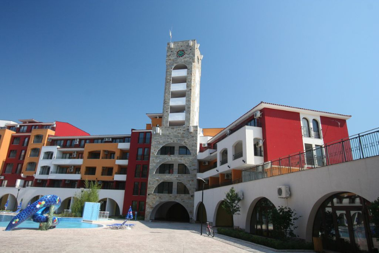 комплекс расположен на 1-ой линии у моря. комплекс работает круглогодично; Квартира находится на 3-ем этаже. Современные апартаменты класса люкс оснащены всем необходимым для комфортного проживания. Студия 43 кв.м. оборудована кондиционером, имеет балкон с видом на море и бассейн. Расположен в 100 метрах от моря, всего в 15 минутах от Бургаса. Цены 18 евро в сутки.для 2-3 человек