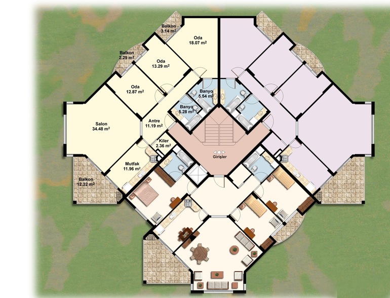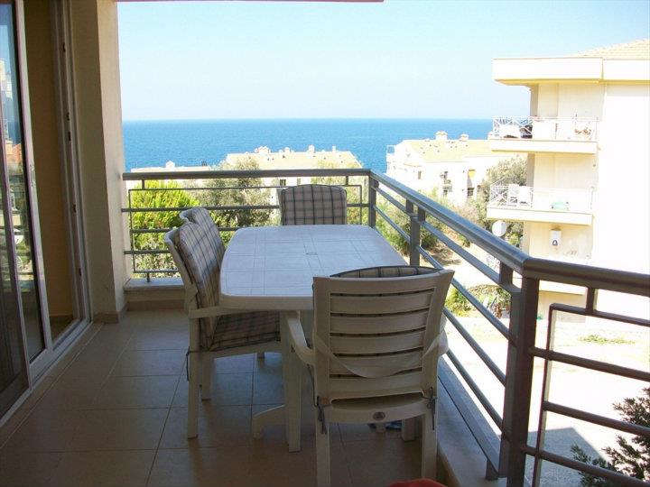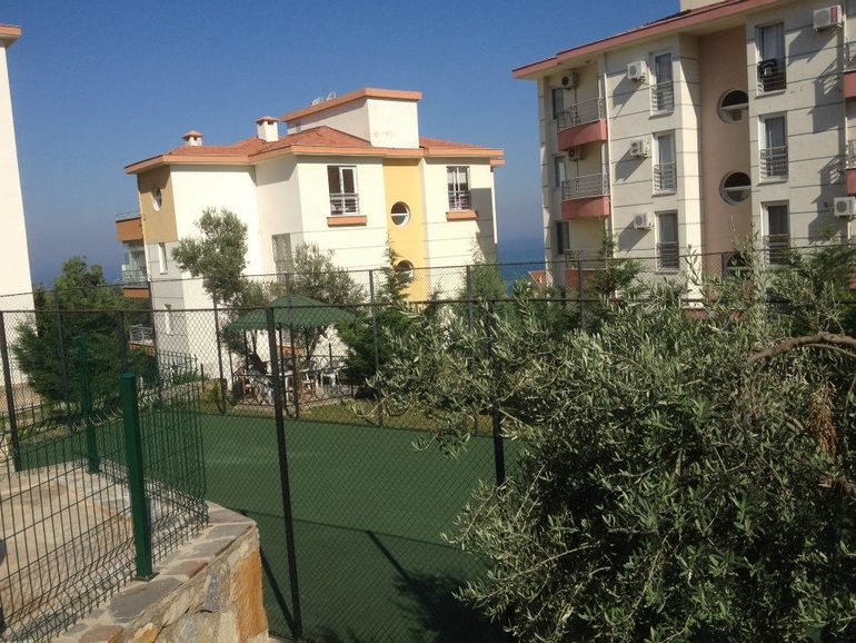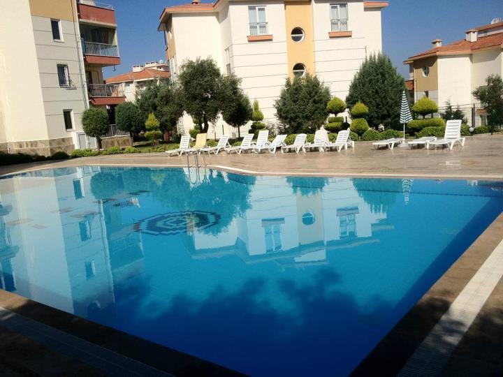 В комплексе есть бассейн с детским отделением и спортивная площадка. апартаменты 3+1 с видом на море, 2 санузла. Наибольшая вместительность 7 человек. Цена - 70$ в сутки. Предусмотрены скидки за длительный период. Есть все необходимое: мебель и бытовая техника, спутниковое ТВ,интернет, WIFI. До пляжа и центра города 10 мин. пешком (700 м от комплекса), также есть остановка долмуша (маршрутка).