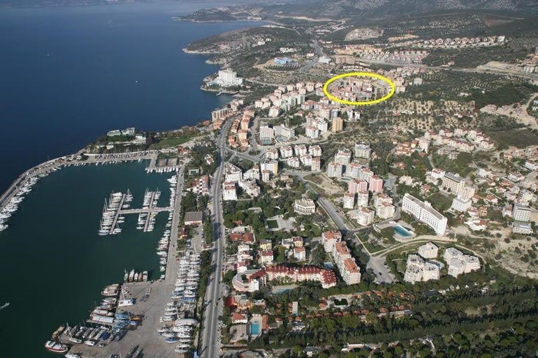 Шикарная набережная с детским парком аттракционов, а также Марина (место стоянки яхт). В районе есть удобная инфраструктура: магазины и супермаркет ( Мигрос ) , рестораны, улица баров и ночных клубов, еженедельный базар , аптека, медицинская клиника. Аэропорт прилета Измир, до апартов 90 км по автобану. Можем предоставить трансфер от аэропорта и обратно. (50 евро в одну сторону), также возможна аренда автомобиля. Живя в Кушадасы открывается великолепная возможность путешествовать в различные места: Аквапарк, Античный город Эфес, где находятся руины библиотеки Цельса, соженной Герастратом - одно из 8 чудес света , Дом матери Марии (место паломничества всех христиан), Шириндже (древняя греческая деревня), Сельчук (город турков - сельджуков) , Национальный парк Дилек, гольф клуб. Греческий остров Самос 20 минут на пароме (посещение при наличии шенгенской визы).