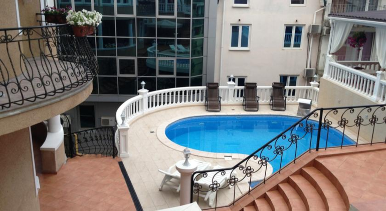 • гостиница имеет собственный пляж 110 кв.м., который находится на расстоянии 50 метров от гостиницы и также укомплектован зонтами и шезлонгами для посетителей отеля.