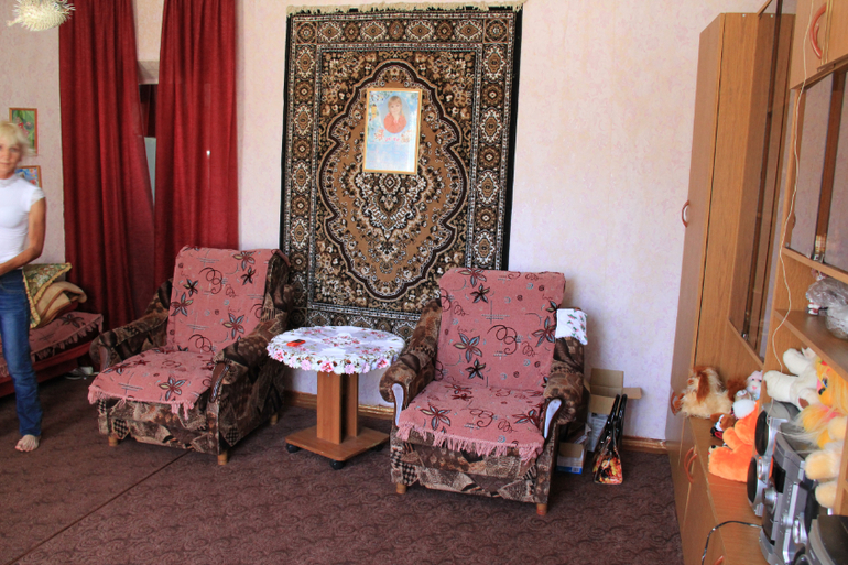 Вариант 2. Номера с удобствами "на этаже" и кухней на улице (в 2014 году было 300р с человека). Номер метров 12-15, оконный кондей, 2 кровати, то ли тумба, то ли шкаф - не помню. Есть двор, тоже общий. Все номера в одну линию, их там около 10 есть 2х местные, есть 3-4 местные. Это тоже рядом с Мариной, через дорогу от нее. У этой же хозяйки есть "люкс", т.е. санузел в номере, но кухня на улице.