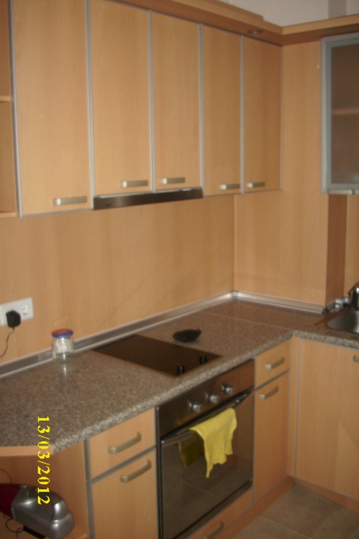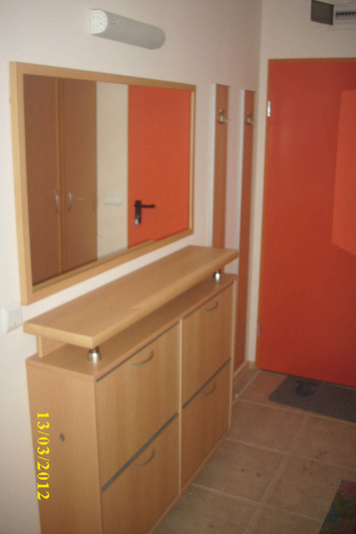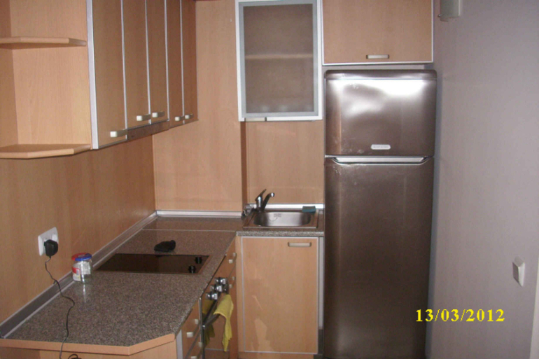 Студио на 1-м этаже. Встроенная кухня ( эл. плита, холодильник, печь СВЧ, посуда), стол, стулья,гарнитур с 2-спальной кроватью. Ванная комната и WC,стиральная ,кабельное,интернет WI-FI.