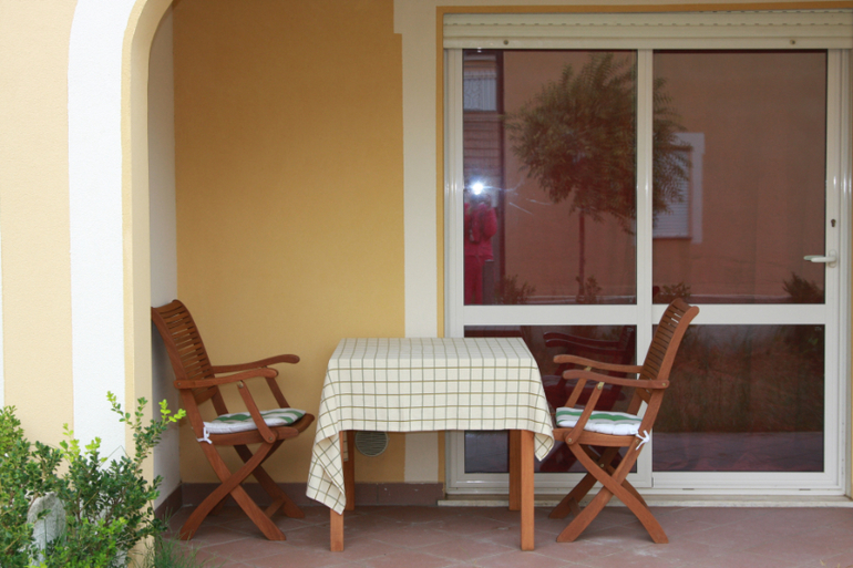 Апартамент-студия: рассчитан на 2-3 человека, патио, терраса, садовая мебель, свой выход на улицу, встроенная кухня, кондиционер, ТВ, интернет, стиральная машинка, холодильник,посуда, постельное белье, банные и пляжные полотенца, двуспальная кровать, кресло-кровать ( 1,9 м).![]()