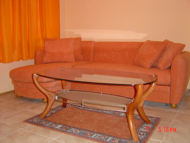 Апартаменты находятся на третьем этаже одного из четырех зданий комплекса, окна и балкон выходят в тихий дворик. Квартира полностью укомплектована мебелью (в т.ч. двуспальной кроватью, двумя односпальными кроватями и угловым диваном в гостиной) и техникой ( в т.ч. кондиционер, телевизор, холодильник, стиральная машина, электроплита, СВЧ печь, электрочайник, утюг, фен).
