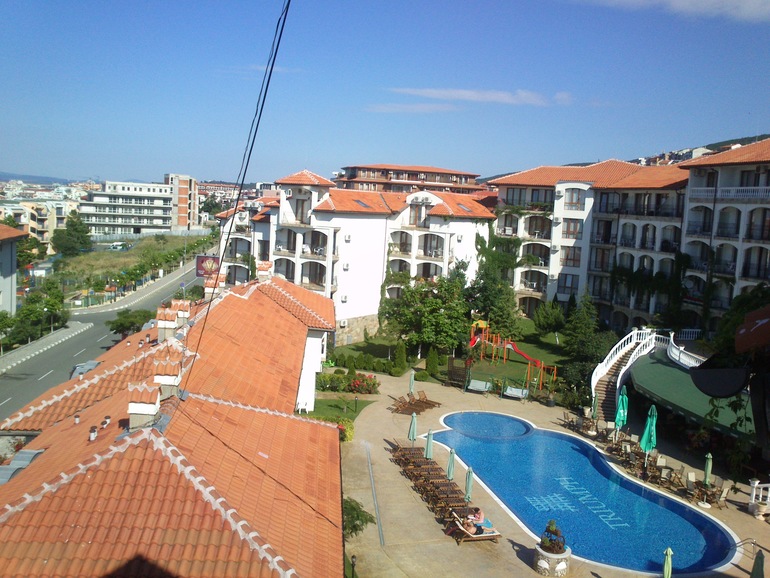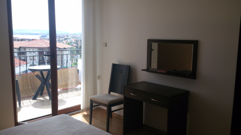 Большая терраса с изумительным видом на весь комплекс, Солнечный берег и Несебр, столик, стулья.