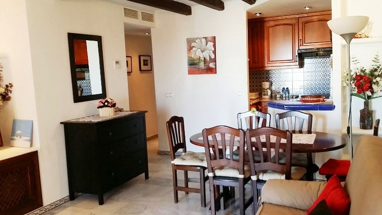 Апартаменты с 2-мя спальнями, кухней, 2 ванные комнаты, просторный салон-гостиная, терраса с видом на красивую урбанизацию Aldea del Mar и боковой вид на море .