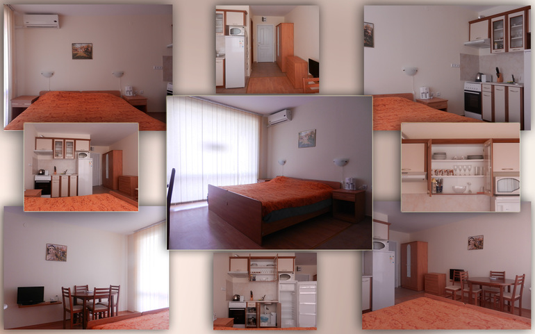 Апартамент 91 в секции А-3, на 1 этаже. Расположен в непосредственной близости от крупнейшего в Болгарии аквапарка, в 7-10 минутах ходьбы от прекрасных пляжей курорта Солнечный Берег, с замечательной инфраструктурой, поблизости от центра. На территории комплекса: 3 ресторана, бар, 6 бассейнов, фитнес, сауна, детские игровые площадки, теннисный корт, «Релакс» зона "оазис" с деревьями, цветами, газоном; интернет клуб, центр красоты, медицинский центр, прокат автомобилей паркинг. Первый комплекс на курорте Солнечный Берег с собственным гольф - полем!