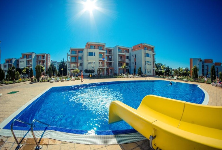 Комплекс апартаментов Nessebar and Holiday Fort расположен на курорте Солнечный Берег. Сдам СВОИ апартаменты в этом комплексе. Апартаменты находятся в 300 м от аквапарка Action и в 900 м от ближайшего песчаного пляжа. Вся территория огорожена и находиться под охраной, что особенно важно при отдыхе с детьми. На территории комплекса 9 бассейнов, водные горки, детские площадки, столы для игры в теннис, гольф-поле, спа-салон, фитнес-зал, ресторан, бар и много чего другого. Так как комплекс находится не на пляже, там достаточно тихо для спокойного отдыха с детьми. Магазин есть прямо в комплексе. Ближайший большой супермаркет в 5 минутах ходьбы.