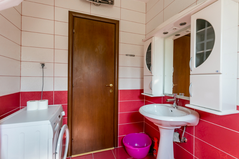 Спальня расположена изолированно от гостиной. Большой санузел с ванной.