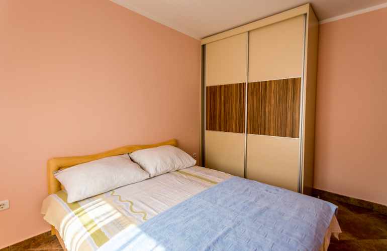 Размещение 4+1 ( в гостиной - большой раскладывающийся диван, в спальне - двуспальная кровать, есть детская кроватка в аренду)