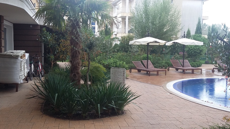 БОЛГАРИЯ СДАМСдаю аппартамент с одной спальней в Несебре, на границе с Солнечным Берегом. Мы долго выбирали квартиру в Болгарии, много где смотрели. Но это правда как в Ницце! Комплекс Mesembria Palas рядом со знаменитым пляжем Какао бич - уникальные песчаные дюны, голубой флаг, ни много ни мало! Закрытая территория: тропический парк, три бассейна, в том числе детский, детская и спортивная площадки, лежаки деревянные, не из дешевого пластика, никаких дискотек и спорт-баров на территории. Но при этом в 5 минутах ходьбы кипит курортная жизнь, магазины, больница, аптека (всякое бывает). Рядом два аквапарка, пешком полчаса по променаду вдоль моря до старого города - памятник, охраняемый ЮНЕСКО.