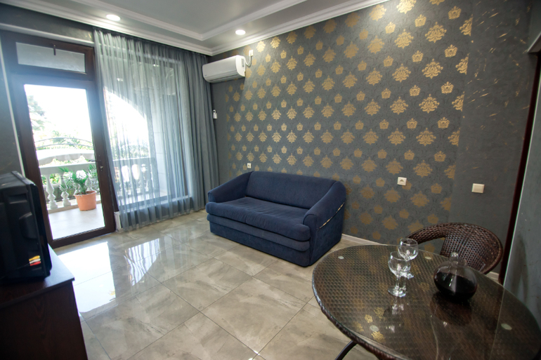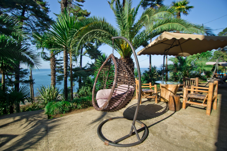 До пляжа 2 минуты пешком (лежаки и зонтики можно взять в кафе на пляже), самая мелкая галька во всем Батуми, местами можно увидеть черный песок целебный, магнитный, как в Уреки.