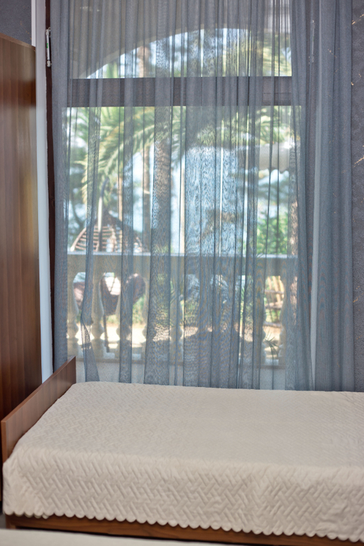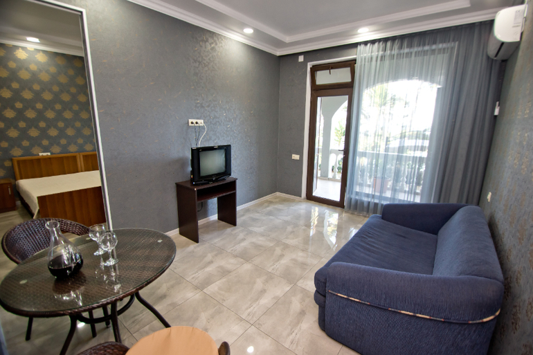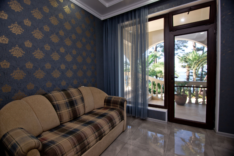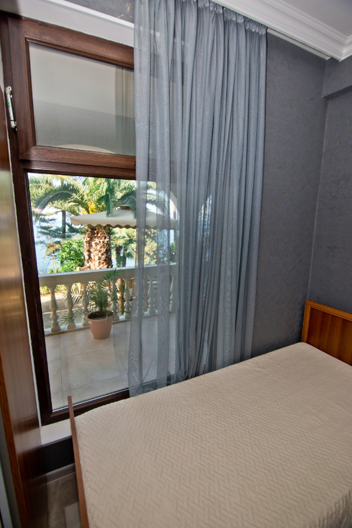 Всего 9 номеров, из них 6 с видом на море и 2 (на сад, пальмы и горы), в номерах есть своя спальня, ванная с туалетом.